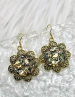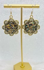 These gorgeous dangles have crushed abalone seashells and gold metallic flakes embedded in clear resin. Hypoallergenic, lead and nickel-free.